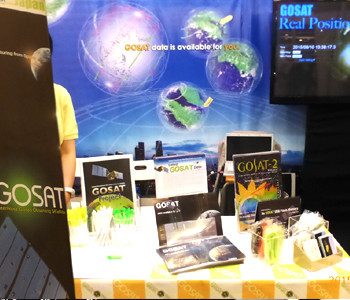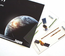 台紙に印刷された【地球】と、しおりに印刷された【観測技術衛星 いぶき】とが重なって