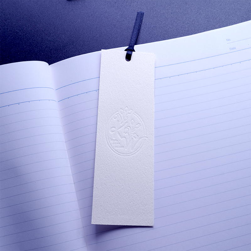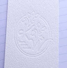 用紙の淡いグレーに、繊細なロゴの型押しで、
