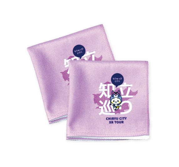 ハンドタオルのデザインは、知立市のマスコットキャラクターの「ちりゅっぴ」と「知立市の花カキツバタ」の色である紫色をベースに、企画の啓発用として作成。
